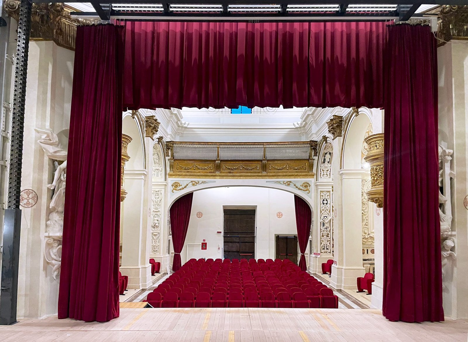 Attraverso la fornitura di sedute per sala teatrale e soluzioni di allestimento scenico in armonia con l’architettura esistente, l’intervento ha contribuito a restituire alla città uno spazio culturale capace di accogliere spettacoli, eventi e iniziative pubbliche in un contesto architettonico di grande valore.
